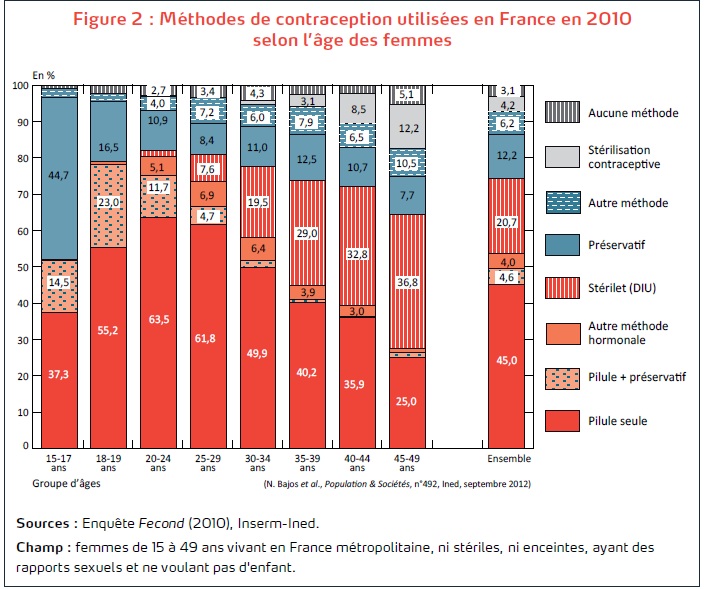 L’étude de l’INED contient un graphique de l’utilisation des différents moyens de contraception selon l’âge des femmes qui montre que l’utilisation du stérilet augmente avec l’âge.